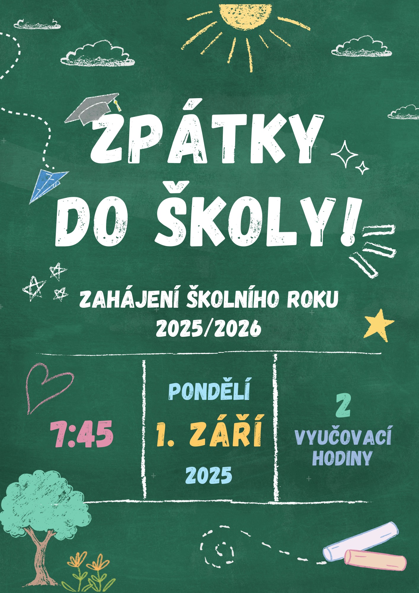 Prvňáčci v doprovodu rodičů budou přivítáni v 7.45 před školou, v případě nepříznivého počasí